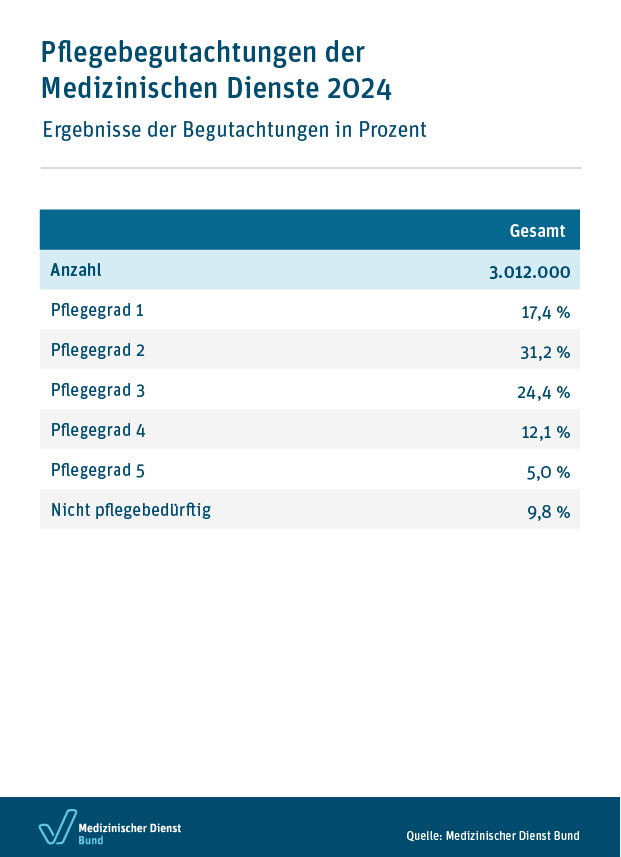 Pflegebegutachtungen der Medizinischen Dienste 2024 - Ergebnisse der Begutachtungen in Prozent