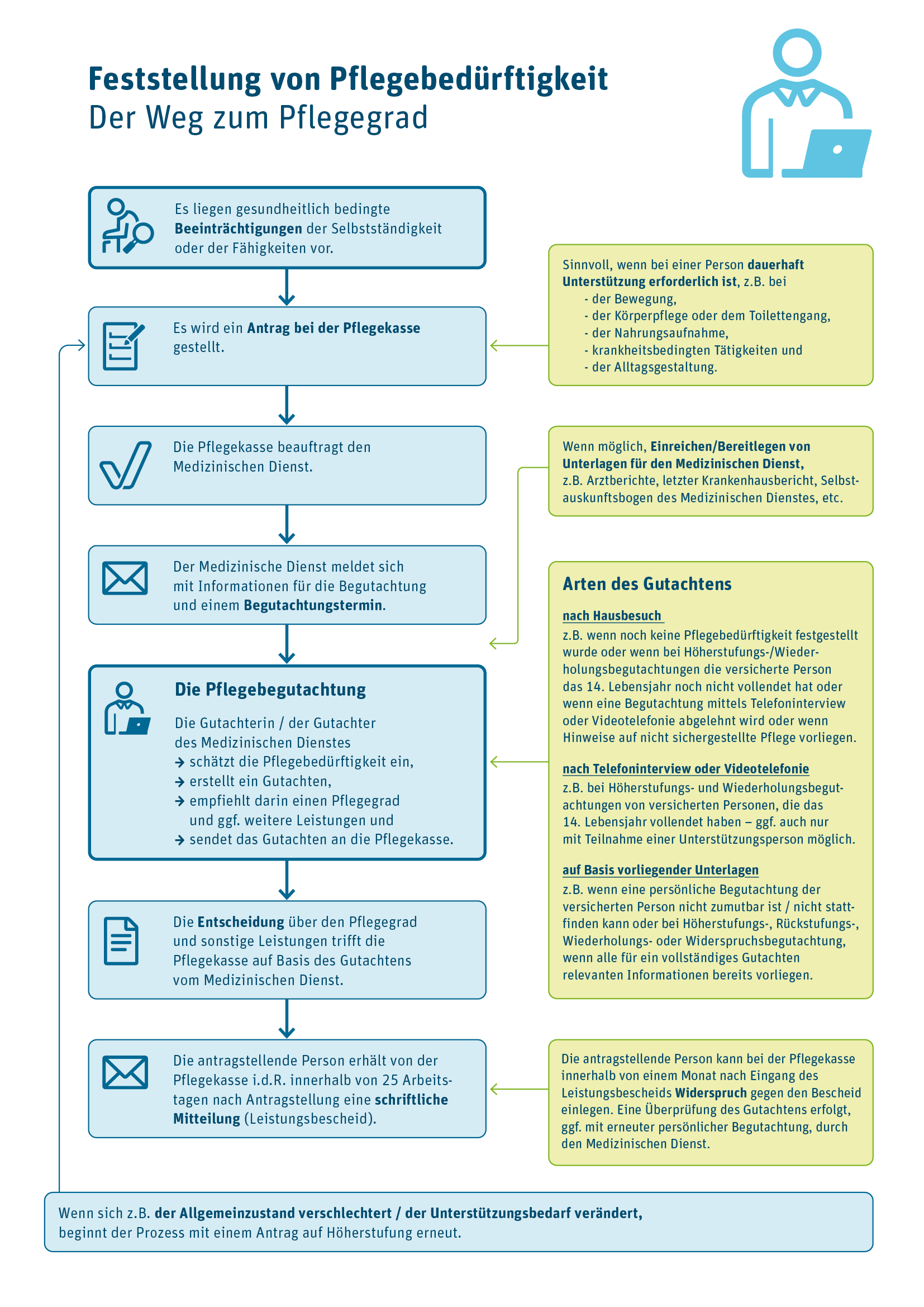 Infografik „Feststellung von Pflegebedürftigkeit - Der Weg zum Pflegegrad“ als PDF-Datei